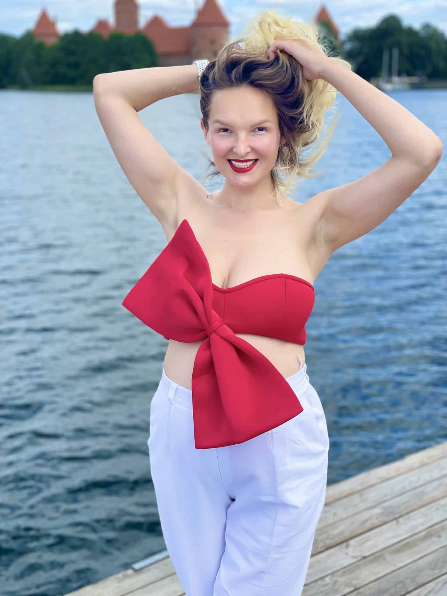 Austėja Dapkevičiūtė-Purlienė: šioje nuotraukoje 5 mėn nėštumo metu čiuožinėju ant užšalusio ežero prie Trakų pilies. Dailiuoju čiuožimu mėgėjiškai užsiiminėjau būdama paauglė, jau virš 10 metų sportą esu užmetusi, tačiau ant pačiūžų vis tiek jaučiuosi labai gerai. Tad turiu tradiciją kasmet bent po kelis kartus paspaudus šalčiui ir užšalus ežerams prisiminti šį sportą. Nėštumas šiai tradicijai taip pat nesutrukdė!