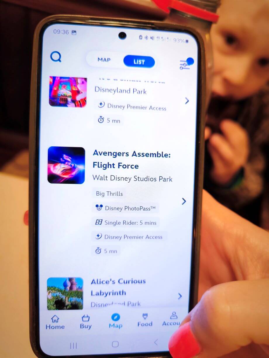 - Parsisiųskite programėlę Disneyland Paris – ji padės jums ne tik naviguoti milžiniškoje parkų teritorijoje, bet ir susiplanuoti laiką. Joje matoma gyvai kiek reikia laukti eilėje prie atrakcionų, kada vyksta pasirodymai, kur ir kokie personažai fotografuojasi.