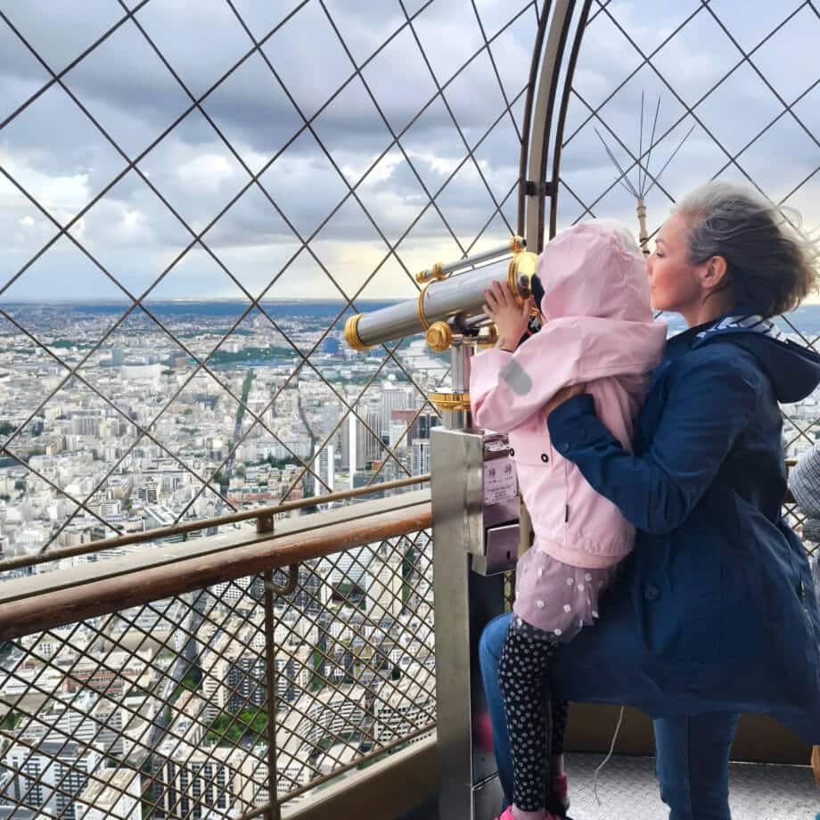 • Atvykus net trumpam, būtina pasikelti į Eifelio bokštą. Geriausias laikas keltis į viršų, po pietų kai dar šviesu, bet likti kad sulaukti, kaip mieste užsidega šviesos. Eifelio bokšte yra kavinė žemesniame aukšte ir šampano baras pačiame viršuje. Kaip minėjome, bilietus vaikams įsigyti galima tik kasoje vietoje, o be vaikų – internetu čia.