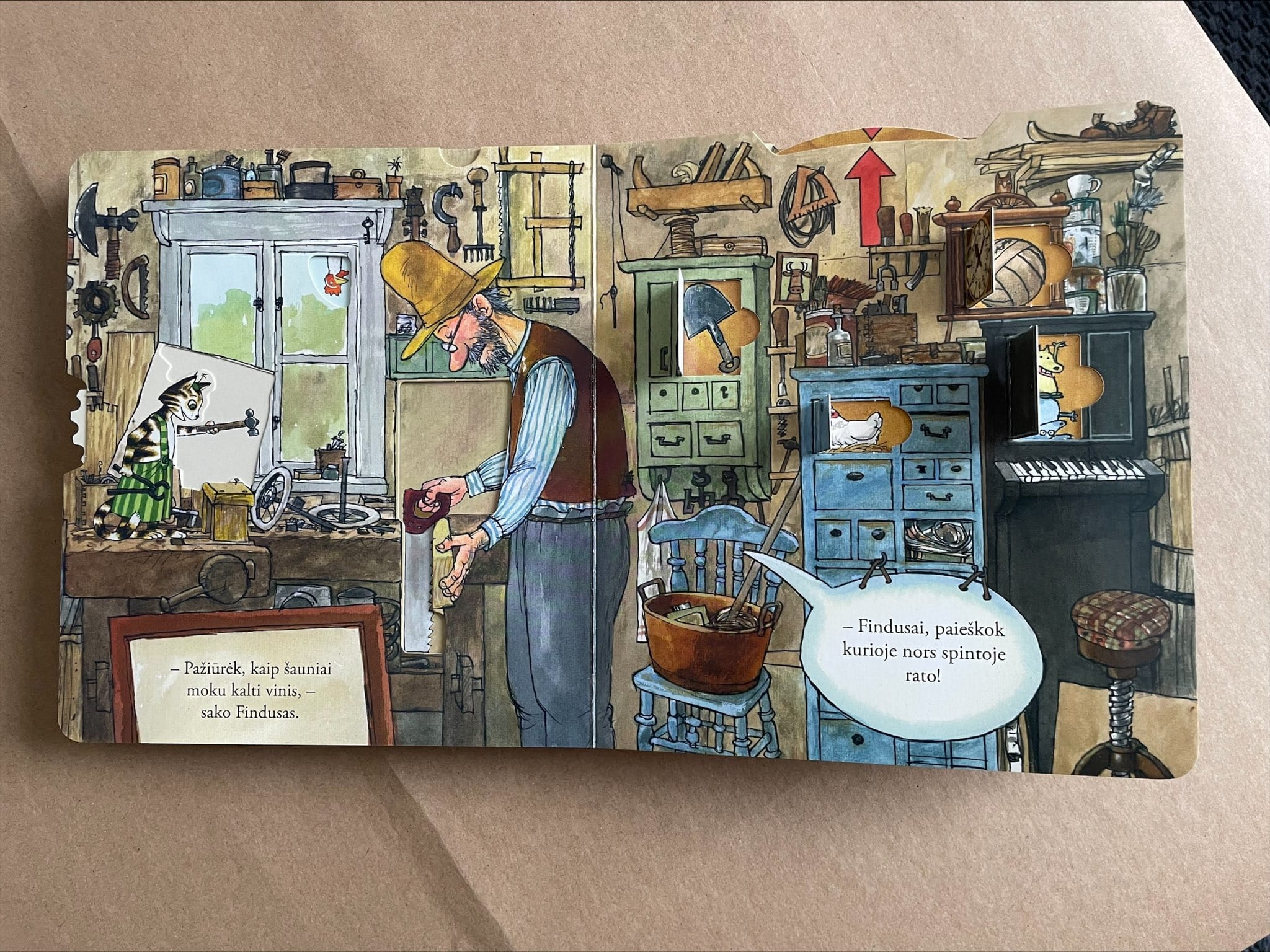Šiek tiek vyresnių vaikų pamėgti herojai Petsonas ir Findusas – taip pat tiesiog privalo būti įtraukti į kelionės daiktų sąrašą. Knygoje „Petsonas ir Findusas konstruoja mašiną“ rasite ne tik nuotaikingas istorijas, bet ir ištraukiamas detales, atvartus, kas puikiai užims vaikus kelionėje!
