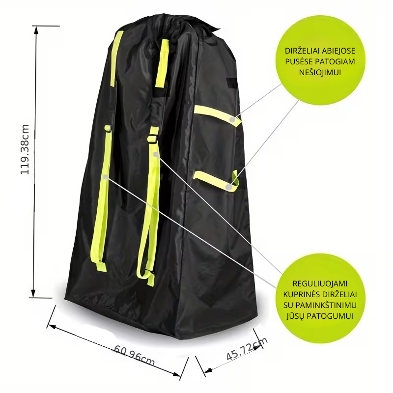 ✨ Sprendimas? Kelioninis krepšys vežimėliui! Jis: