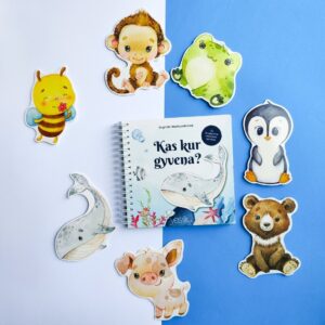Lavinamoji veiklos knyga su daugkartinio naudojimo lipdukais „Kas kur gyvena”