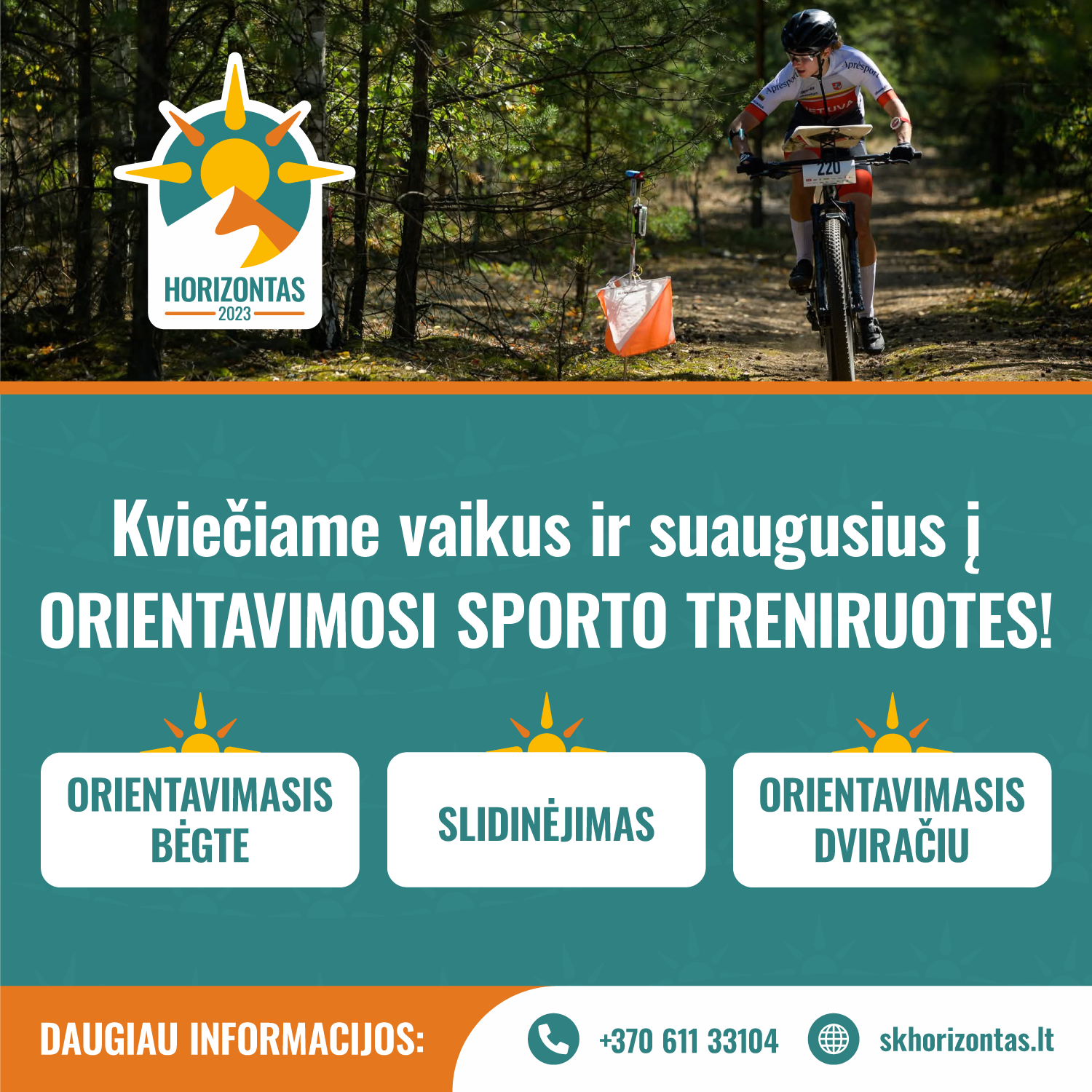 Sporto klubas „Horizontas“ organizuoja orientavimosi sporto treniruotes vaikams ir suaugusiems Klaipėdoje. Mokiname orientavimosi subtilybių bėgte, su kalnų dviračiais, o žiemą – lygumų slidėmis. Daugiau informacijos oficialioje svetainėje: skhorizontas.lt Facebook: Sporto klubas „Horizontas“