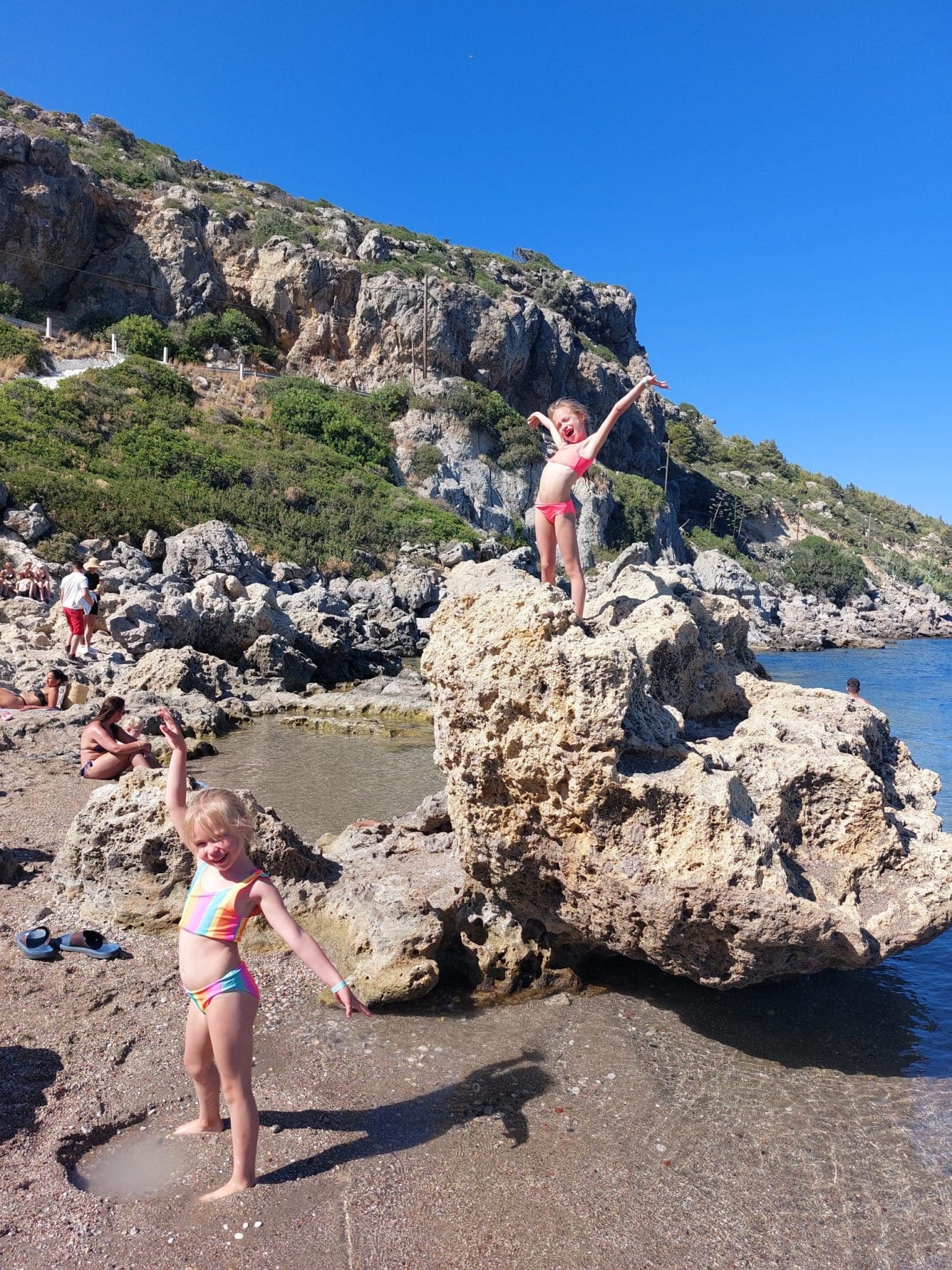 Rodo saloje apsistojome 9 naktims. Vienai dienai plaukėme į Symi salą. Gyvenome viešbutyje Afantu paplūdimyje. Paplūdimys, deja, įspūdžio nepaliko, teko matyti gražesnių. Vaikams labiausiai patiko viešbučio baseinai ir ledai, keliauti aplink nelabai norėjo.