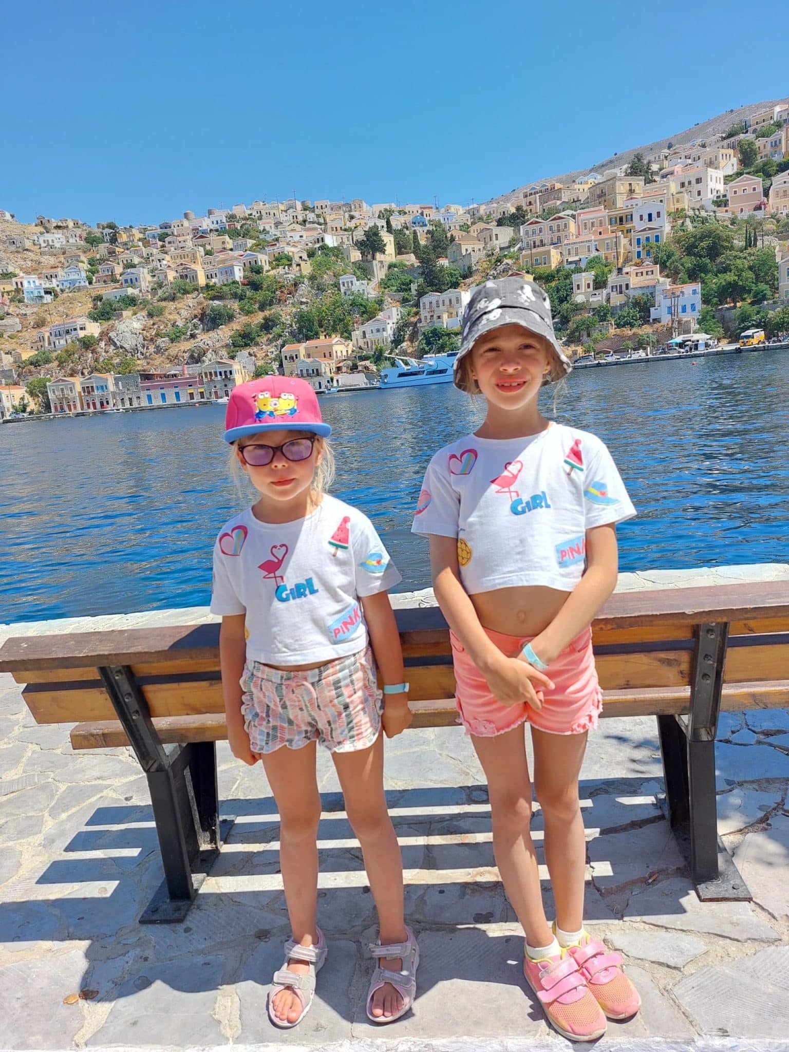 Atostogų paįvairinimui persikėlėme į Symi salą, kelionės trukmė apie 2 val. Sustojome gražioje įlankoje išsimaudyti (maudynių laikas, skiriamas šios kelionės metu – 40 min). Iš viso Symi saloje praleidome 3 valandas. Kelionę užsisakėme iš viešbučio agentūros, kur mus paėmė ir nuvežė tiesiai į uostą, išvykos pabaigoje vėlgi parvežė atgal. Suaugusiems kaina – 39 eurai + 5 eurai už nuvežimą ir parvežimą. Vaikams bilietai su 50 procentų nuolaida bei pervežimas nemokamas (vaikai 7 ir 5 metų). Teko girdėti iš draugų, kad jie vietinėse agentūrose sumokėjo gerokai pigiau, tad šį kartą mums teko smarkiai permokėti, perkant iš agentūros. Rekomenduojame paieškoti vietinių agentūrų – sutaupysite pinigų. Visgi į Symi salą nuplaukti verta! Ji garsėja natūraliomis kempinėmis (rasite visoje saloje), spalvotais namukais ir ramybe dvelkiančia atmosfera. Po salą galima važinėti traukinuku. Kelto bilietus galite nusipirkti ir internetu.