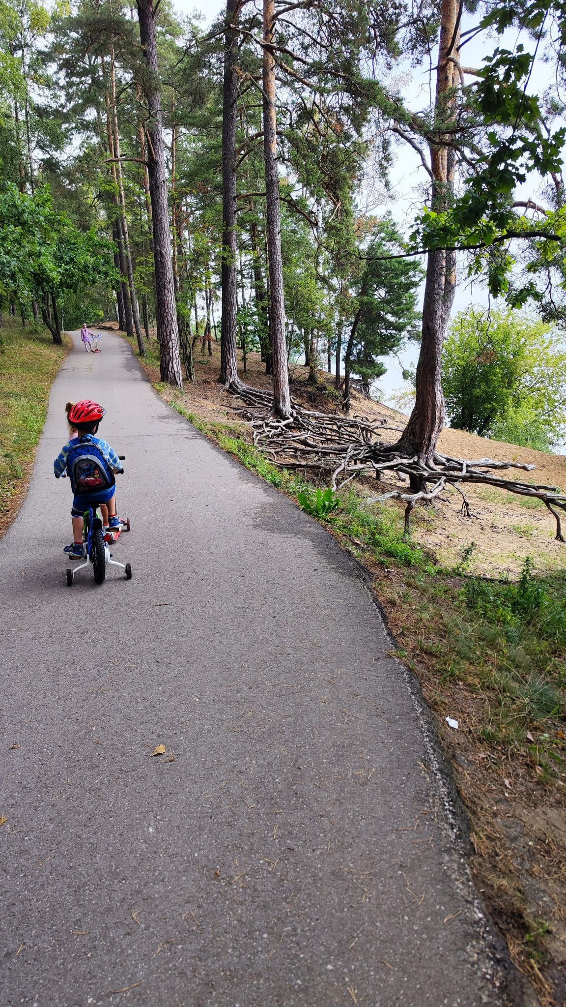 Takas prasideda nuo parkavimo aikštelės ir tęsiasi palei Pažaislio vienuolyno tvorą. Pradedant žygį mus lydėjo vienuolyno varpų garsai (ar žinojote, jog sakoma, kad skambant varpams reikia sustoti?). Takas toliau driekiasi mišku, yra asfaltuotas, gana platus, puikiai tinkantis tiek vežimėliams, tiek kitoms transporto priemonėms. Vietomis yra nemenki kalneliai, tad vaikus reikia pasaugoti, kad neįsibėgėtų. Šalia tako daug gražių atsiveriančių vaizdų ir idealių pikniko vietų. Štai tokioje įspūdingoje ir mes prisėdome piknikui. Lengvai rasite paspaudę nuorodas kur atvykti ir mūsų Google Maps „Keliaujančios mamos” gide ČIA.