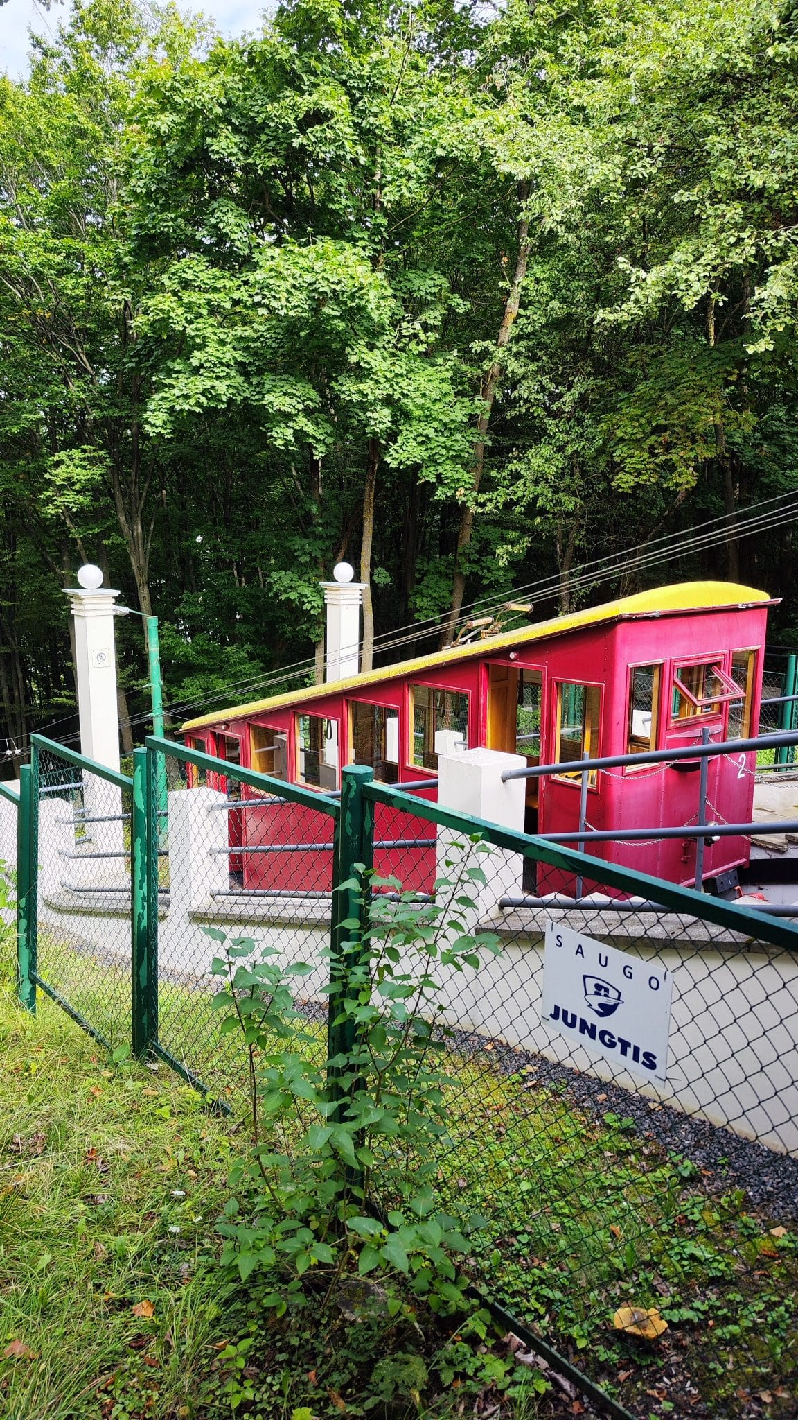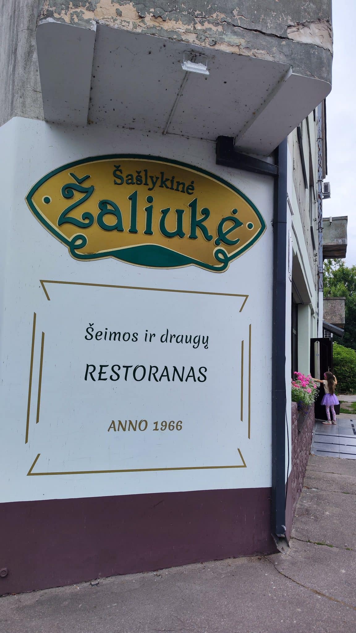 Po žygio gamtoje turėjome tikslą aplankyti Aleksoto funikulierių, kurį vis matydavome pravažiuojant tiltu, bet taip niekad ir neužsukdavom. O kadangi po aktyvių šėlionių lauke vaikai norėjo jau ir valgyti atsidarėme Google Maps programėlę, kuri mus dažnai gelbėja (ne veltui joje ir mes turime „Keliaujančios mamos” gidą).  Ir čia pakeliui link funikulieriaus atradome įdomų įrašą. Apie šeimos ir draugų restoraną „Žaliūkė” veikiantį jau net nuo 1966 metų! Toks restorano darbo stažas dažniausiai pasako gana daug apie jį – tik ypatingai geros maitinimo įstaigos tiek ilgai išsilaiko. Kiek paebejoję ar rasime tinkamo maisto ten (nes pamatėme užrašą „šašlykinė”, o esam vegetarės), nusprendėme duoti šansą šiai, jau galima sakyti, istorinei vietai.
