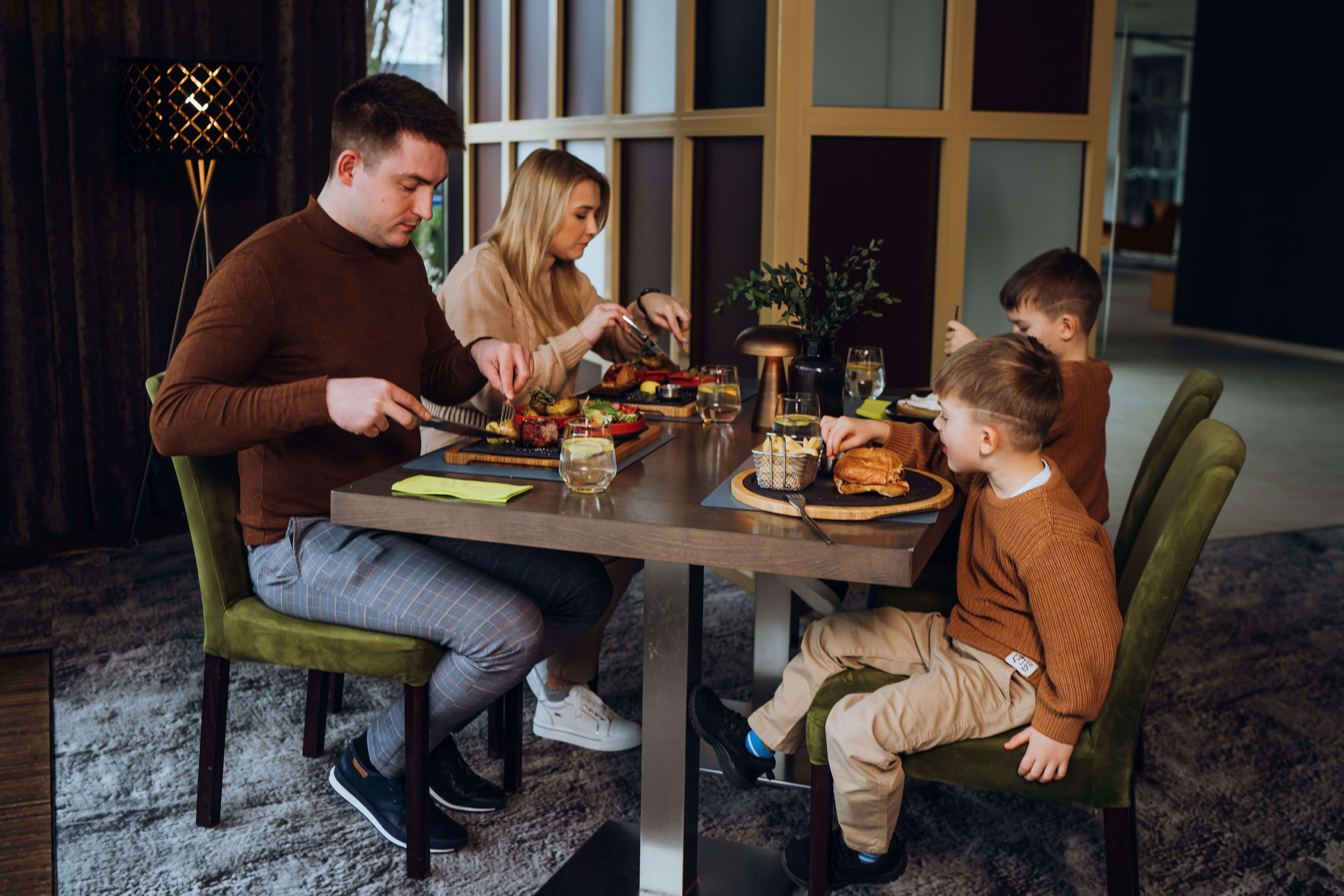 Turime šeimoms pritaikytus kambarių numerius: galėsite rinktis arba pristatomas lovas erdviuose 30 kv.m. geresniuosiuose dviviečiuose numeriuose arba patogiai gyventi geresniuose triviečiuose, keturviečiuose numeriuose ar net erdviuose šeimos apartamentuose, kuriuose džiaugsitės poilsio ir valgomojo zonomis ir virtuvėle.