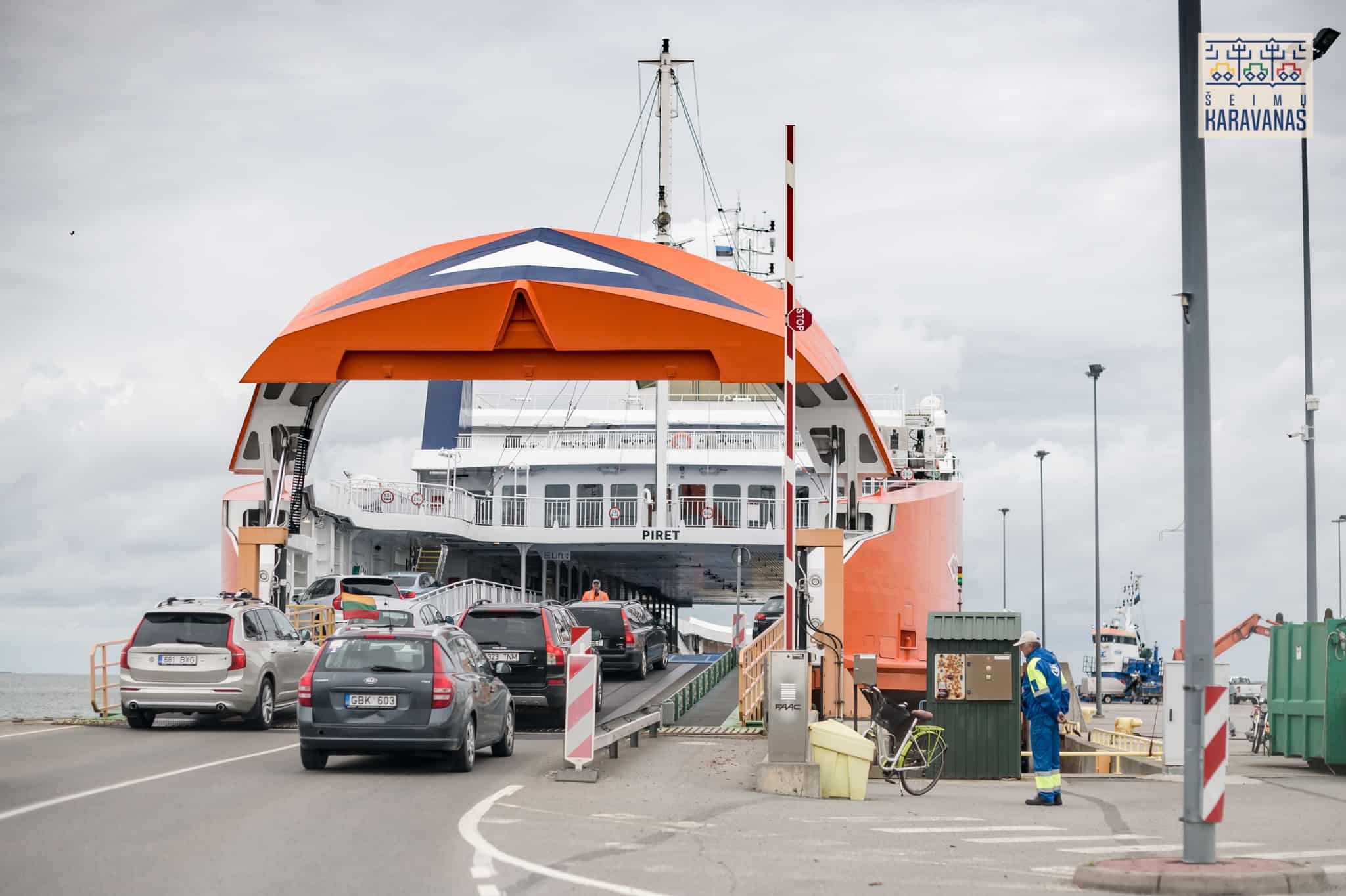 Iš PERNU vykstama į Virtsu uostą. Ten, įsigijus bilietą automobiliui bei keleiviams, keltu keliamasi į Muhu saloje esantį Kuivastu uostą. Ten yra lankomas Koguvos etnografinis kaimas* – pasižvalgoma sename ir unikaliame žvejų kaimelyje. Labiausiai žavi tokiems kaimams būdingos akmenuotos tvoros, apžėlusios kerpėmis ir kita augmenija. Tuomet ilgiausiu Pabaltijyje grįstu keliu-pylimu per Vaike Vain sąsiaurį iš Muhu pasiekiama Saremos sala.