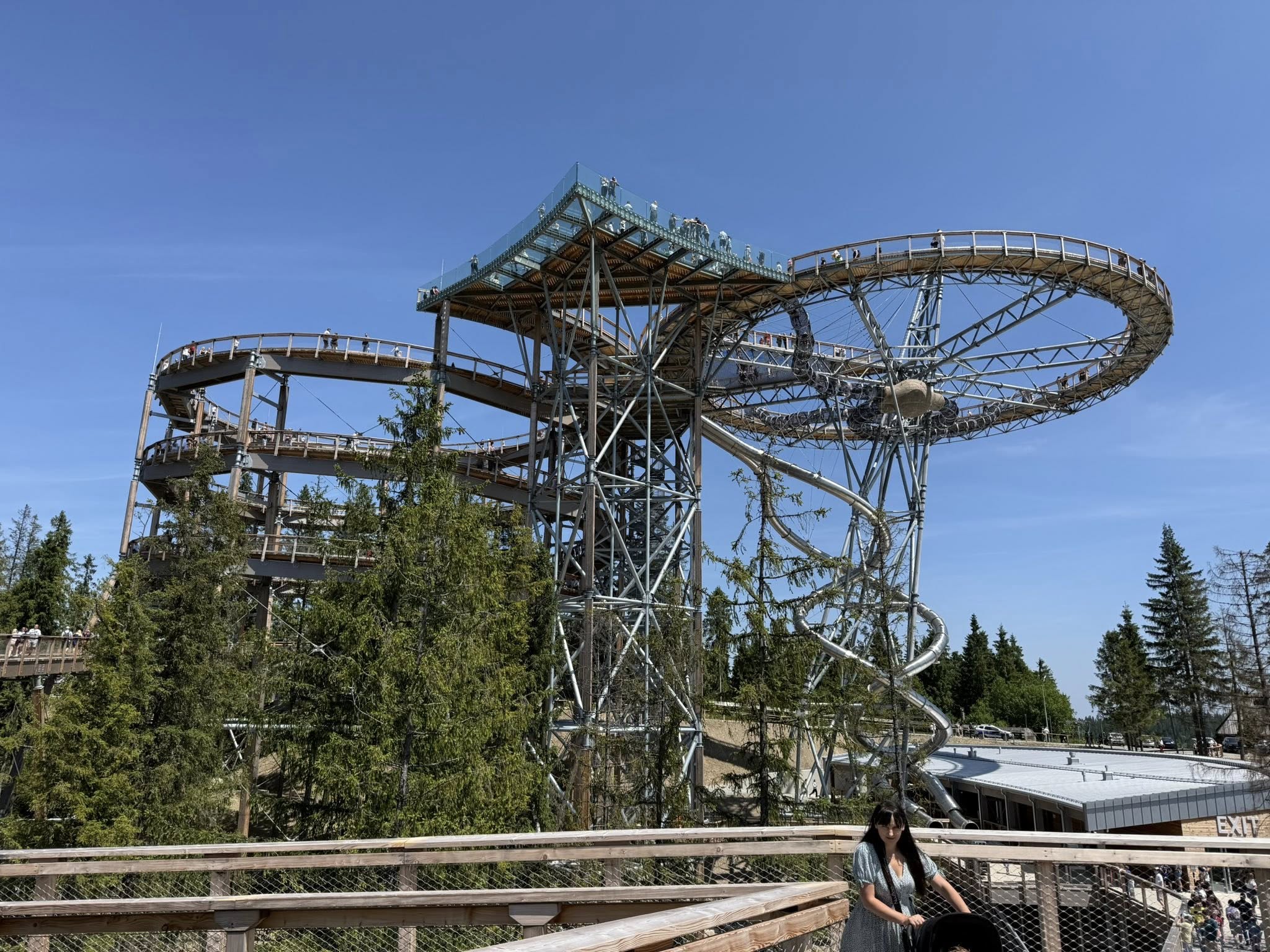 Aplankėme nesenai atidarytą SkyWalk Poronin – labai gražūs vaizdai, yra net kelios vietos kur stovi ant stiklo, ėjimas tinklu, čiuožykla – norint nučiuožti žemyn kainuos papildomai. Bilietus galima įsigyti tik vietoje, mokėjimas galimas grynais ir kortele. Mums (2+2) kainavo 50 €. Šalia – keltuvai, kur kelia žiemos sezonu iki slidinėjimo trasų, galima pasikelti ar nusileisti po pasivaikščiojimo, vaikams labai patiko (25 € 2+2).
