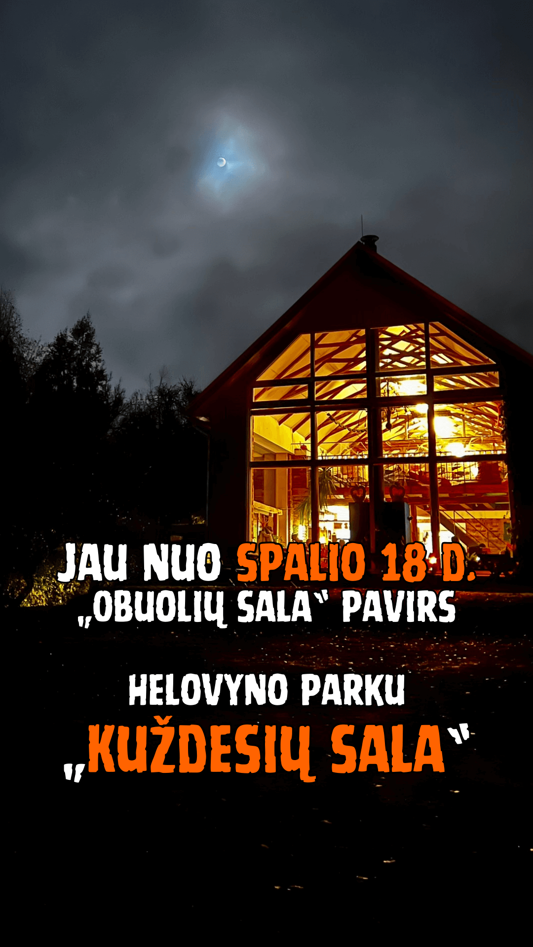 Ar Jūs jau pasiruošę naujiems nuotykiams „Kuždesių saloje“? Šiemet jūsų laukia dar daugiau veiksmo, dekoracijų ir naujų erdvių! Jau nuo spalio 18 dienos „Obuolių sala“ pavirs Helovyno parku – „Kuždesių sala“, kur šiurpūs nuotykiai garantuoti! Kai nusileis saulė, į salą pradės rinktis neramios sielos… Jos blaškosi po salos labirintus, slepiasi naminių gyvūnų kapinėse ir tyko jūsų įrengtose baimės erdvėse!