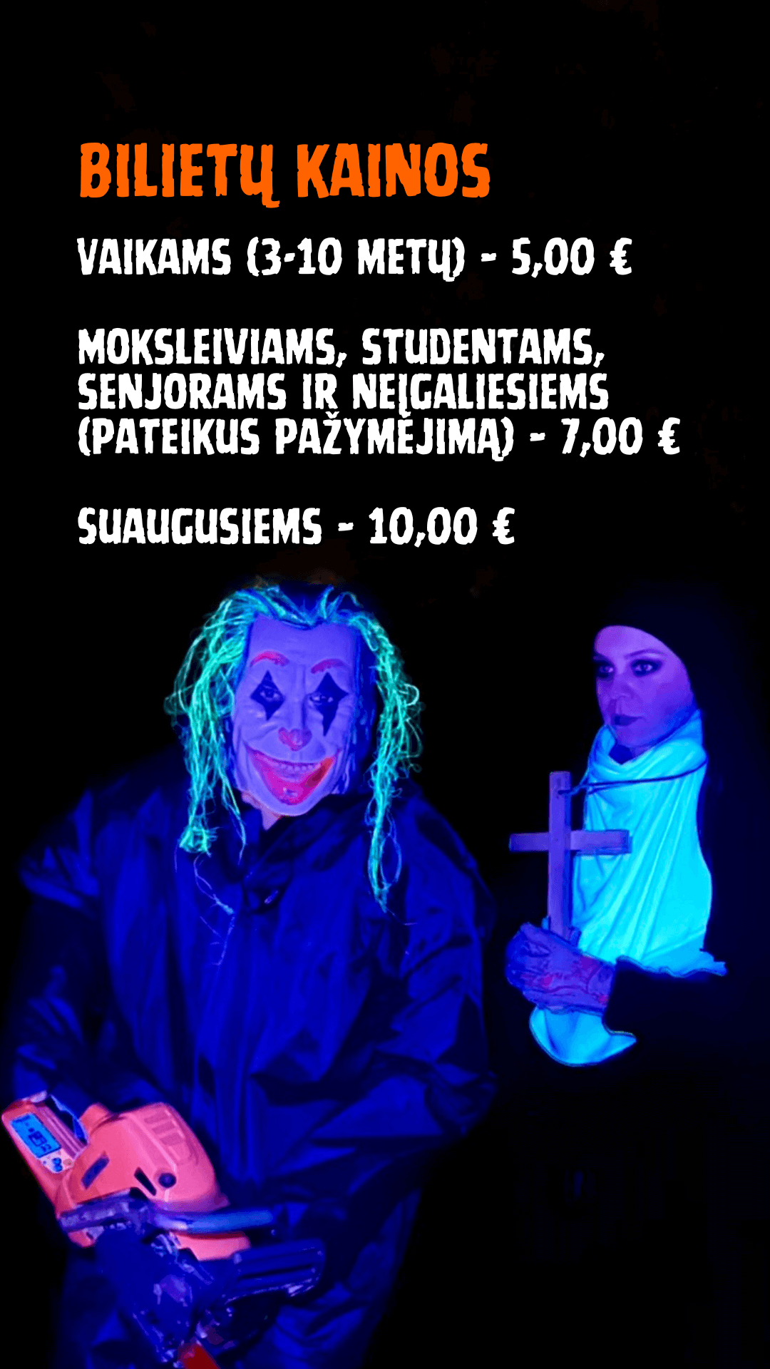 Nebaisiadieniais (spalio 17, 24 d., lapkričio 3 d.) visi lankytojai pramogauja už vaikišką kainą – tik 6€!