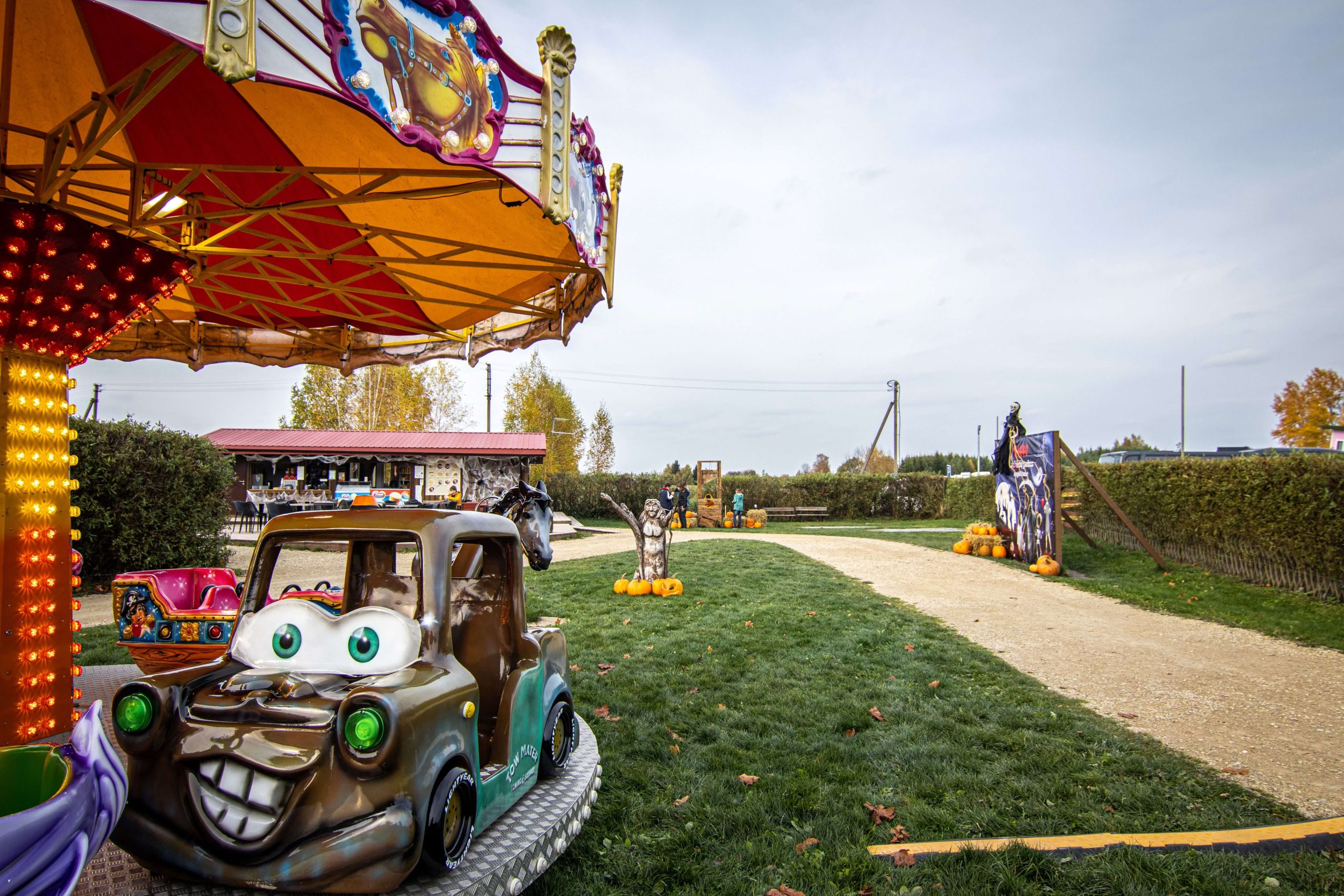 Karuselių ir prekybos zonoje linksmybės visiems – karuselės įskaičiuotos į bilieto kainą be jokių papildomų gudrybių! Parke laukia unikalios rankų darbo dekoracijos, kur teks susimąstyti kaip taip tikroviškai!? 3D projektorius, šachmatų žaidimas demonų ir velnių pasaulyje, gaudynės su angelais ir žmonės įdarbinti demonams! Skamba neįtikėtinai?