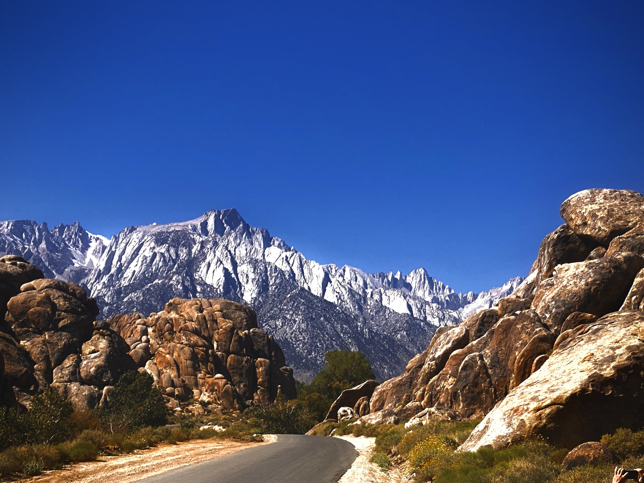 Kalnas pavadintas mokslininko Whitney pavarde, kuris pirmasis iš ketvirto karto su ekspedicija įkopė į kalną ir atvėrė kelią milijonams alpinistų. Šis žmogus yra dėdė lietuviškų šaknų turinčios amerikietės, kuri šią vasarą apsigyveno pas mus ir ieškojo savo prosenelės gyvenamos vietos. Ją sėkmingai radome gretimame kaime. Šio kalno neplanavome aplankyti, bet kažkokiu būdu atsidūrėme miestelyje Lone Pine. Pirmą vakarą mus apšaudė iš istorijos muziejaus išlindę kaubojai. Pasirodo, tą savaitgalį vyko kino festivalis ir visas miestelis virduliavo praeities atmosfera. Užsukus į vietinę kavinukę pusryčių ir besišnekučiuojant su savininke, gauname pasiūlymą užkilti į vieną nuostabiausių kalnų Amerikoje. Išgirdę Whitney kalną pasidaliname istorijomis ir pasileidome į nuostabų paukščių skrydį, neužmiršdami likimui padėkoti už visų istorijų sutapimus ir atsitiktinumus. Gamta yra nuostabi! Vieną akimirką sustojame prie barškuolės, už kito posūkio pamatome briedžius, o štai ir grizlių šeima, tūkstančiai laisvai besiganantys bizonai ir laukiniai arkliai.