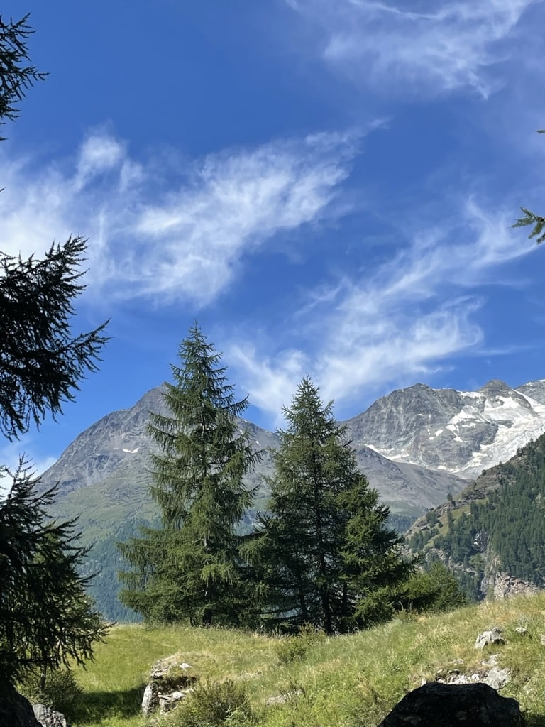 Kadangi kelionės tikslas, vis dėlto, buvo gamta, Ženevoje neužsibuvome ir patraukėme link Alpių į Cermatą. Toks mažas miestelis, maitinantis didelį regioną aplink. Nes šalia turi begalinį traukos tašką – Matterhorną. Tai – ne aukščiausias Šveicarijos kalnas, sako, net ne techniškai sudėtingiausias. Bet neabejotinai gražiausias. Todėl pritraukiantis tūkstančius žmonių. Kas bando lipti, kam užtenka iš viršaus parasparniais pasidairyti, kas tiesiog aplink paropinėja. Nes to gėrio apstu ir žiemą, ir vasarą.