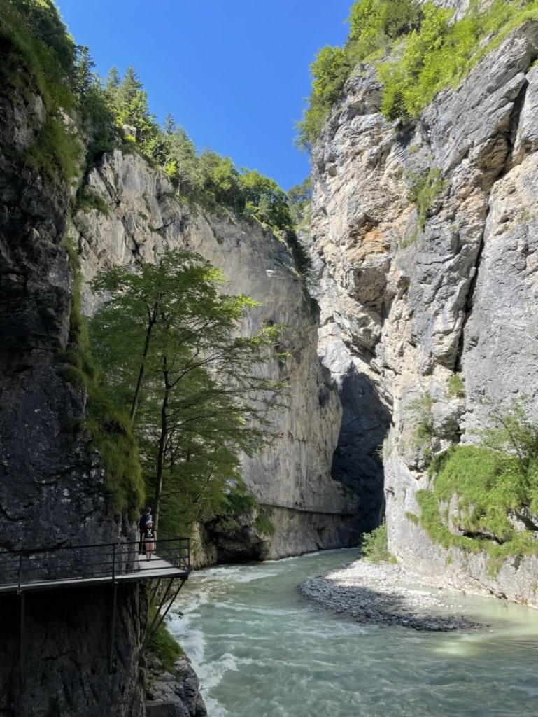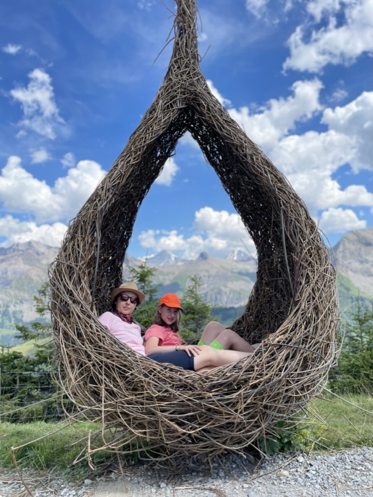 Didžiausias teigiamas šios kelionės netikėtumas buvo visai atsitiktinai aptiktas Aare tarpeklis. Tai maždaug kilometro ilgio takas olose, atveriantis natūralios gamtos erozijos stebuklus, nuo kurių akys tiesiog raibsta. „Lašas po lašo ir akmenį pratašo“ tiesiogiai pasitvirtino visu savo gražumu. Beje, kai į kitą tokį tarpeklį jau taikėm specialiai, jis labiau nuvylė, nei pradžiugino, nes buvo mažesnis, kur kas nepatrauklesnis ir neapleido jausmas, kad vietinis kaimas tiesiog gaudo pravažiuojančius turistus kabliuku. Tiek to, už verslumą negali pykti, tegul sukasi kaip išmano. Kur tikrai šveicarai perlenkė lazdą, tai Adelbolden miestelio „dangaus lizdas“ – toks aukštai aukštai kabantis supintas lizdas, kuris pardavinėjamas kaip kalnų sūpuoklės. Kėlėmės. Keliais keltuvais. Sumaišėm. Leidomės ir vėl kėlėmės. Kitais. Tuomet susidūrėm su švedų šeima, kuri ten fotosesiją žaidė. Žaidė 5 min. 10 min. 15 min. Pabodo laukti. Kai jau jų vaikai pasitraukė ir grįžo pas tėvą, maniškės nuėjo prie tuščio lizdo. O man teko išklausyti švedės tiradą – iš pradžių angliškai, po to, matyt susipratus, švediškai – kaip mes jai neleidom pasidžiaugti tuščiu lizdu… Jis nevertas to marketingo, kiek dėl jo daroma. Trosais pritvirtintas stabilus krepšys. Tiek to lizdo ir grožio. Į ant gretimo kalno esančias „giant swing“ jau ir nesikėlėm. Čiuželių dukart dėl to paties dar niekas neapgavo.