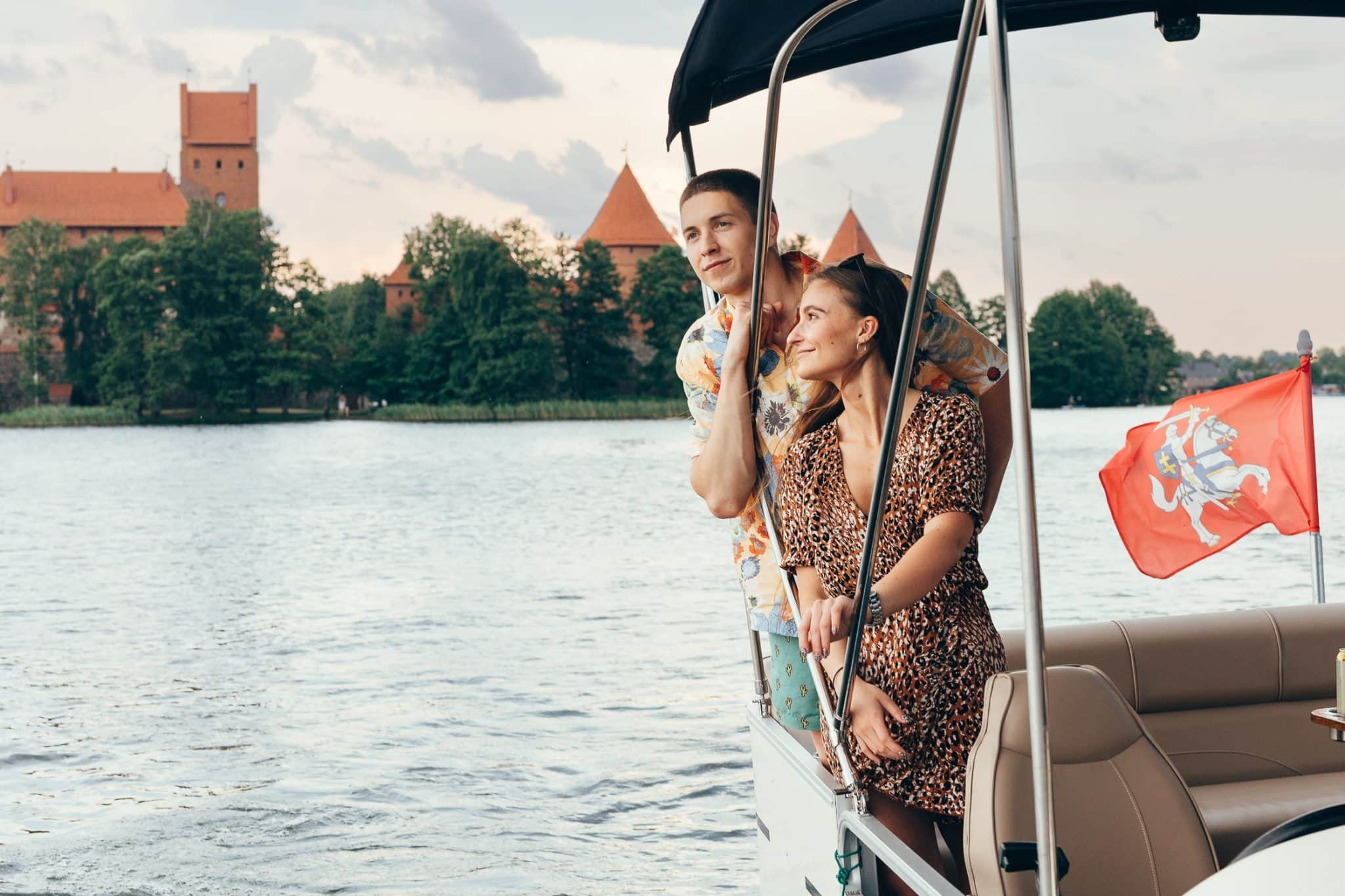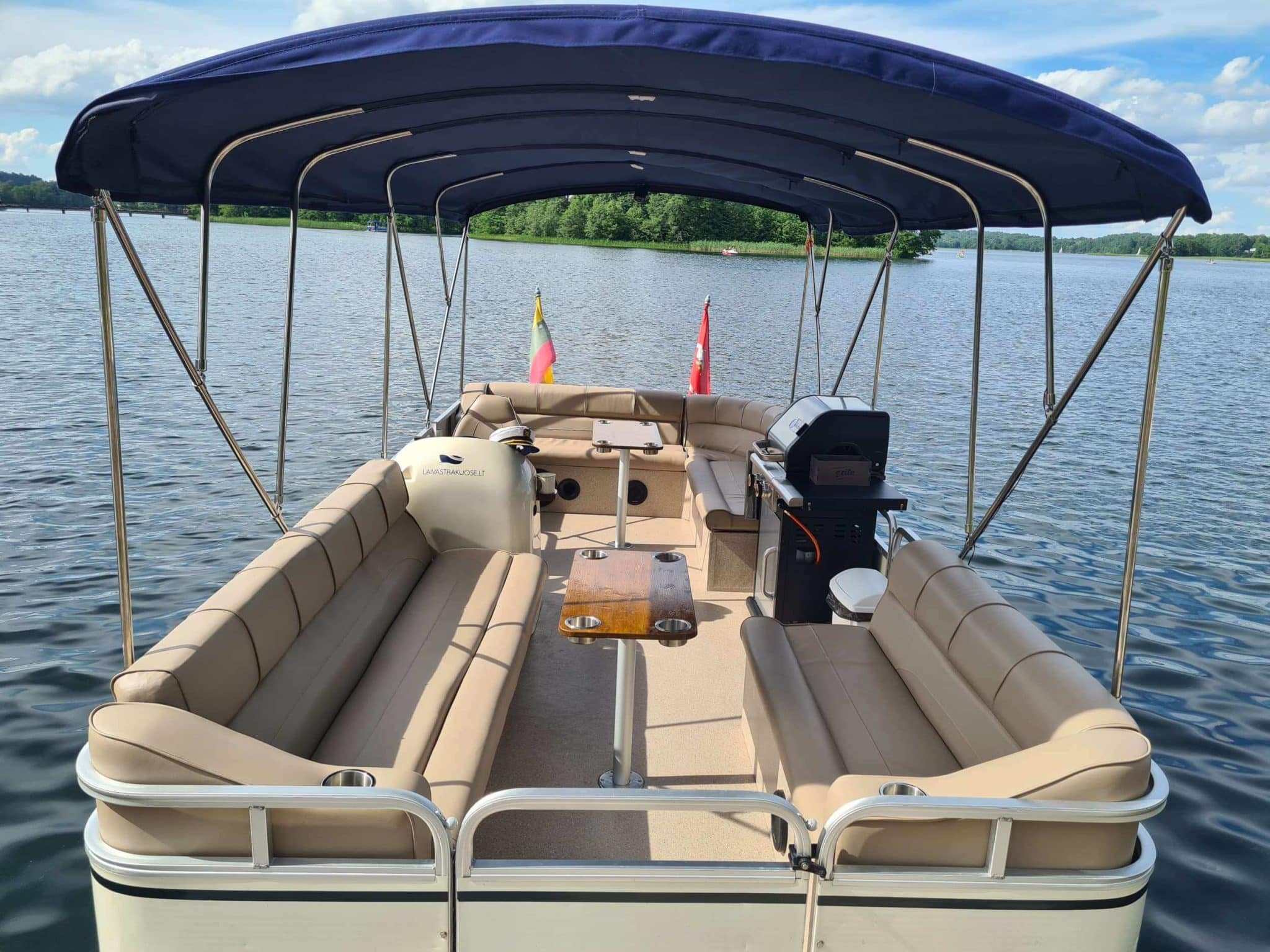 Nors Trakų pilį iš visų pusių juosia vanduo, ją galima pasiekti (kaip ir visą miestą apeiti) – pėsčiomis. Tačiau „Keliaujančios mamos” kviečia Trakus pažinti iš laivo denio! Pramoginis laivas talpinantis iki 12 žmonių, siūlo 3 valandų trukmės paplaukiojimą po Galvės ežerą. Čia jūsų patogumui įrengta persirengimo kabina, išskleidžiamos kopetėlės, leisiančios jums patogiai pasiekti vandenį, muzika bei internetas. Laive įrengti šviesos ir lazerių efektai, sukuriantys ypatingą atmosferą. Naujai persiūtas laivo salonas, erdvios ir komfortiškos sėdynės, staliukai, patogiai išplanuoti puodelių laikikliai, telefono krovimo jungtys ir kitos malonius smulkmenos plaukimo metu Jums leis jaustis nepaprastai jaukiai ir komfortiškai. Kerinčios gamtos vaizdų apsuptyje galėsite skanaukiti tik ką ant grilio iškeptą maistą. Laive rasite modernų „Landmann“ dujinį grilį, kurio pagalba galėsite pasičirškinti savo atsivežtą valgį. Laivelis uždengtas brezentu, todėl būsite apsaugoti nuo lietaus ar kaitros!