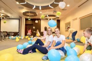Tol, kol vaikai leis laisvalaikį saugioje ir atraktyvioje studijos erdvėje, suaugusieji galės ne tik dirbti, bet ir atsipūsti nuo kasdienių rūpesčių. Studija dirbs ne tik dieną, bet ir vakarais (ketvirtadienį, penktadienį ir šeštadienį). Jei vakarais papramogauti norės tėvai-vaikus kviesime į mūsų vakaro programą „Smagusis vakarėlis“. Čia mažųjų lauks animatorių pasirodymai, diskoteka, teatras, ledų gamyba ir daug kitų pramogų. Restoranas “Onore“ rūpinsis maitinimu studijoje, ruoš išskirtinį, vaikų labai mėgstamą, meniu.