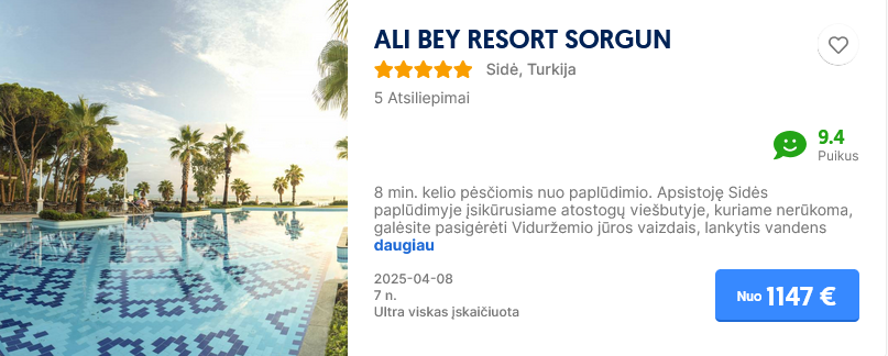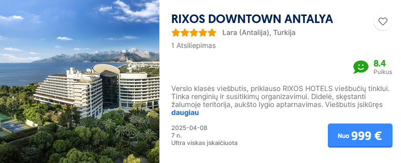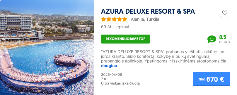 Planuojant atostogas, svarbu rasti vietą, kurioje puikiai jaustųsi visi šeimos nariai. Jei keliaujate į Turkiją su vaikais, tačiau jūra dar per šalta maudynėms, šildomi baseinai tampa puikia išeitimi. Jie leidžia mėgautis vandens pramogomis bet kuriuo metų laiku. Kad būtų lengviau išsirinkti, šiame straipsnyje pateikiame  TOP50+  VIEŠBUČIŲ su šildomais baseinais SĄRAŠĄ pagal keliautojų atsiliepimus, suskirstytus pagal regionus. Planuojate ilsėtis Turkijoje su šeima? Pasitikrinkite šiame sąraše ar pasirinktame viešbutyje yra šildomas baseinas, kaip šis viešbutis vertinamas ir kiek kainuoja pasirinktu laikotarpiu. O jei domina konkretus kelionės į Turkiją pasiūlymas jūsų šeimai – taip pat padėsime!