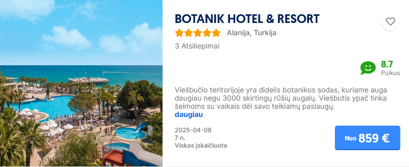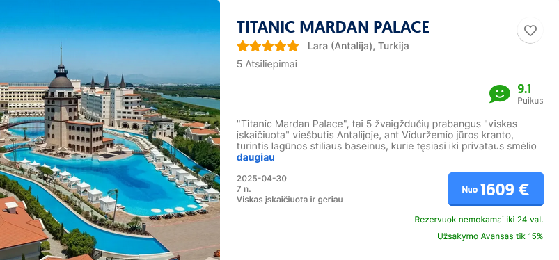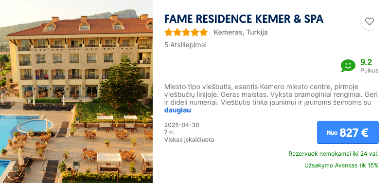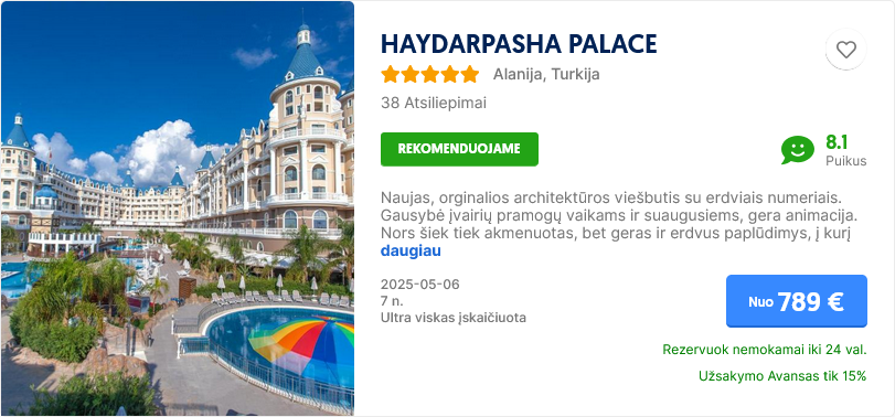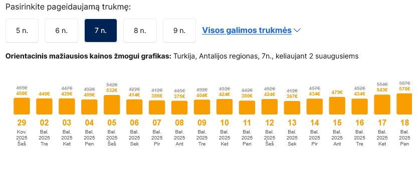 Pasitikrinti kainą savo pageidaujamu laikotarpiu gali čia.