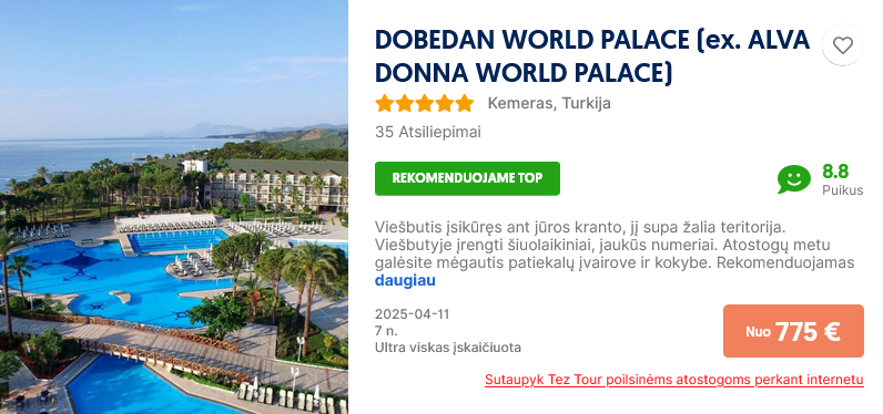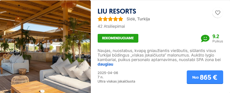 Pasitikrinti kainą čia savo pageidaujamu laikotarpiu.