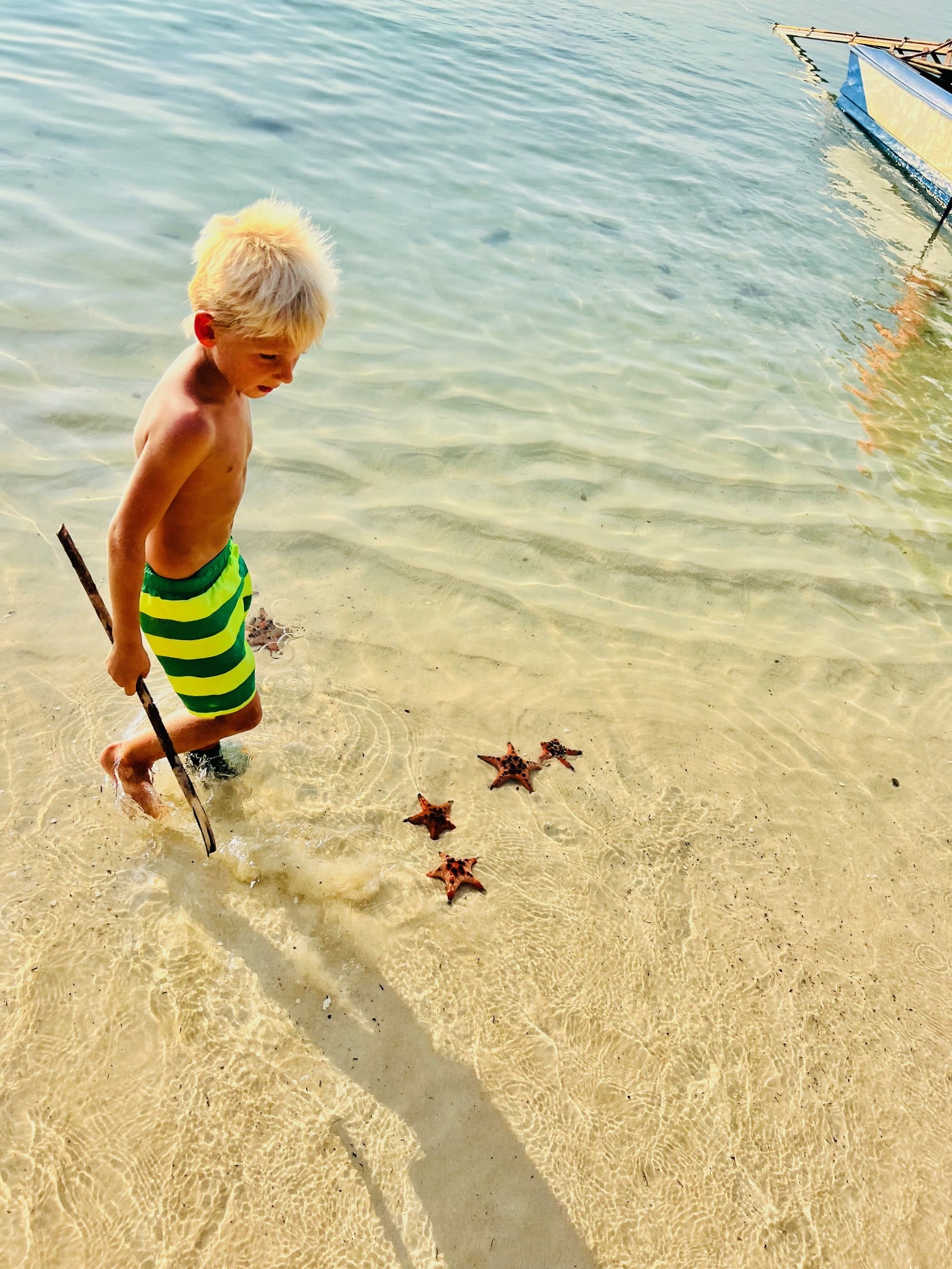 - Žvaigždžių paplūdimys (Starfish Beach), kuris randasi salos šiaurinėje pusėje. Pasiruoškite praleisti tenai bent jau pusę dienos. Paplūdimyje nuomojami skėčiai, gultai bei pardavinėjami gėrimai. Nusigauti tenai reiktų kviestis taxi (vėlgi Per GRAB programėlę), nuvežama iki galutinio taško ir dar reikia paeiti apie pusę kilometro pačiu paplūdimiu. Jums tikrai beeinant siūlys pavežti laivuku už tikrai nemažą kainą – galite sutikti, bet galima tikrai derėtis (reali kaina šeimai turėtų būti 330000 VND už kelionę pirmyn ir atgal). Restoranų pačiame Starfish paplūdimyje nebuvo, tad būtų gerai įsidėti pavalgyti.
